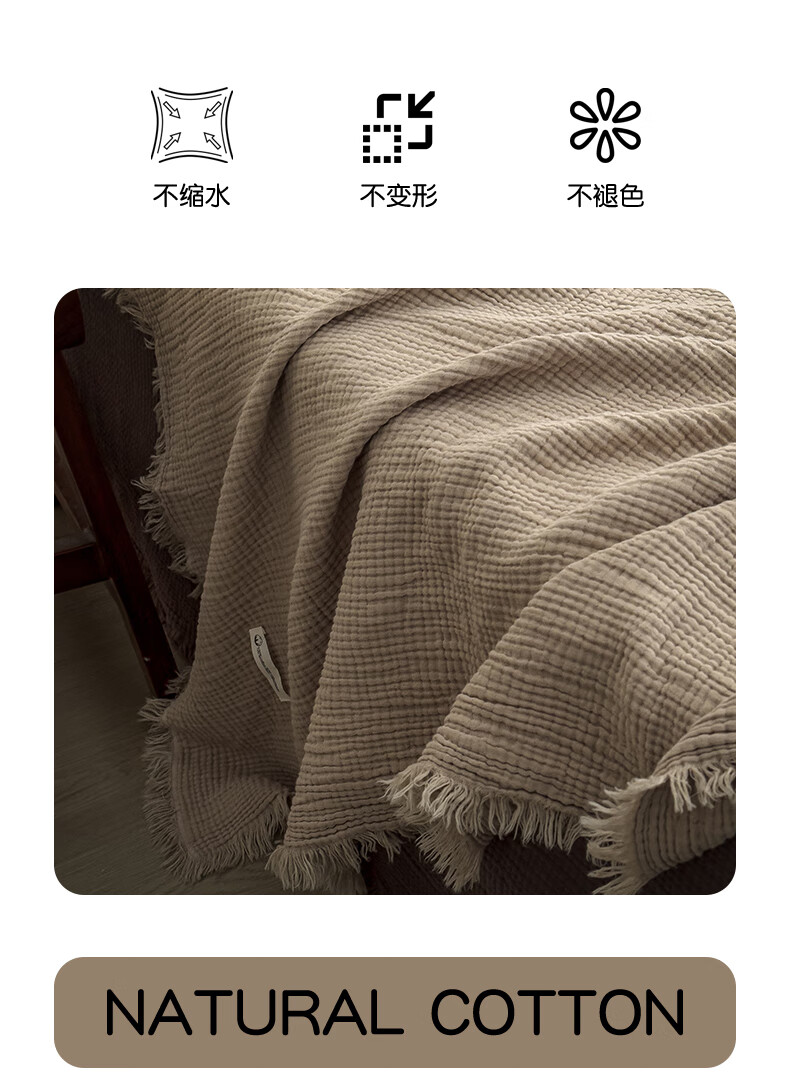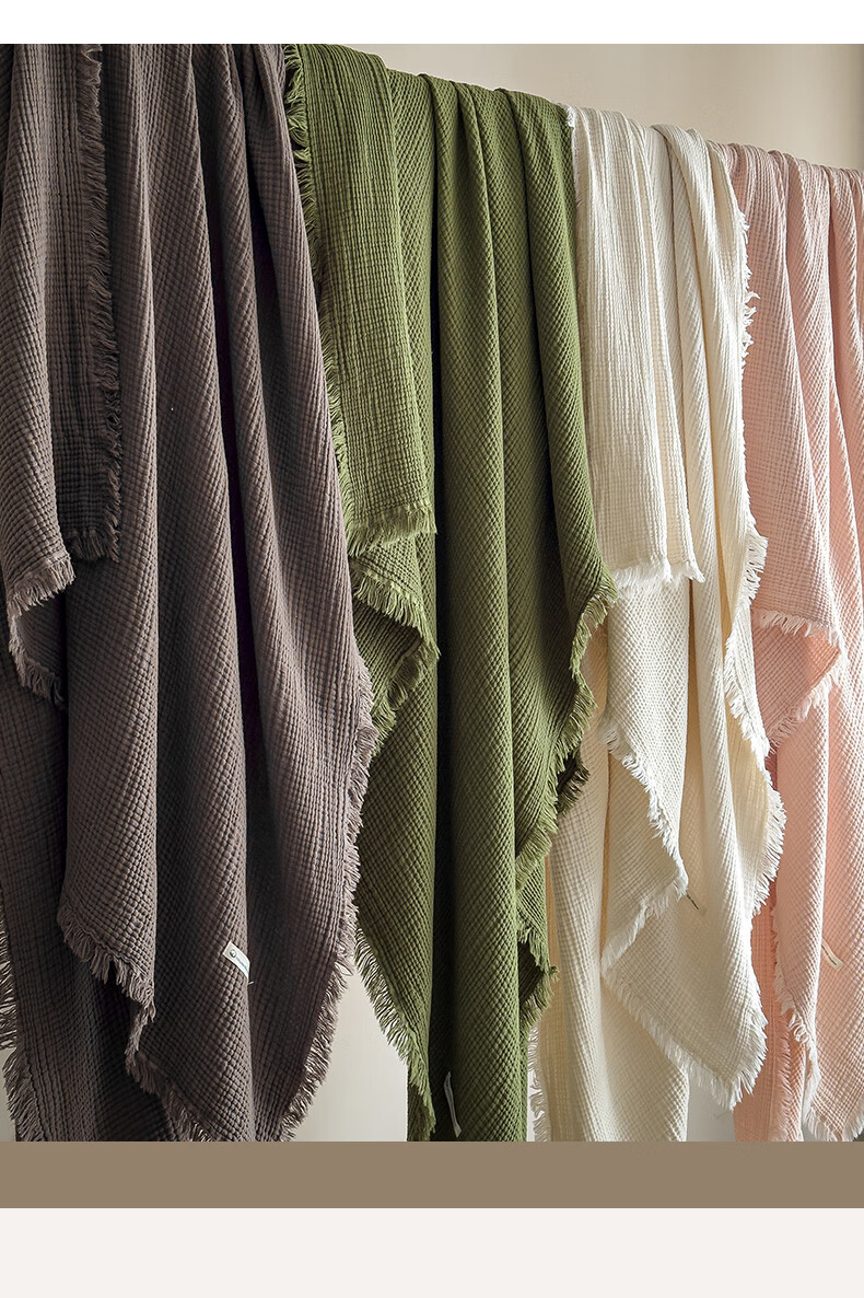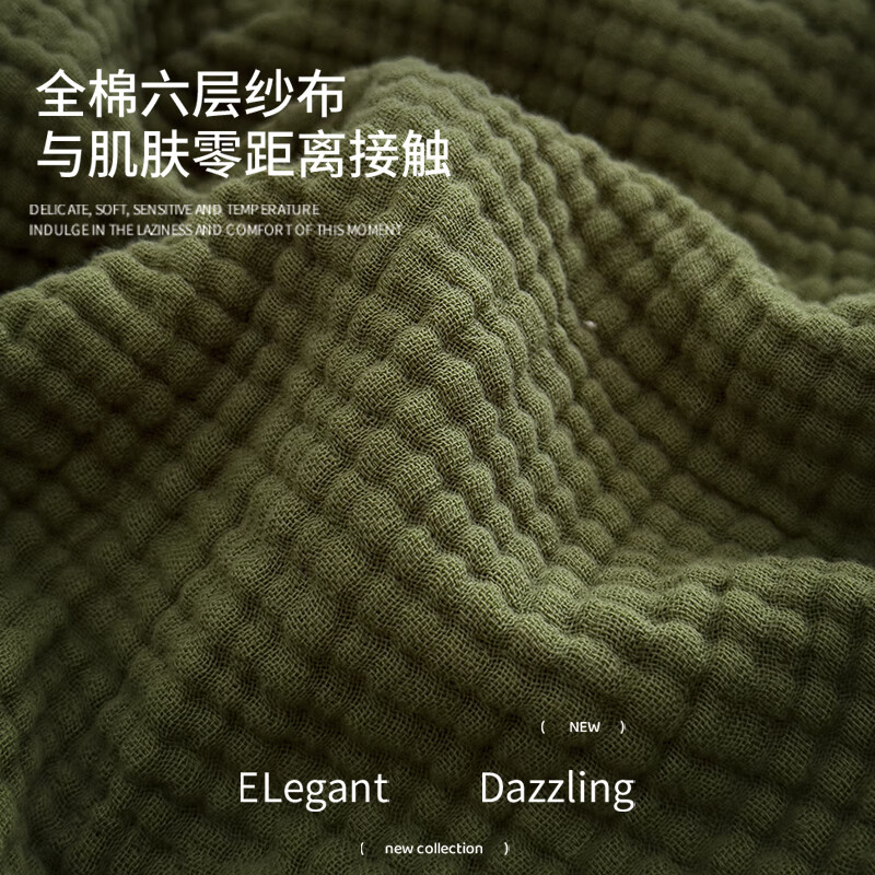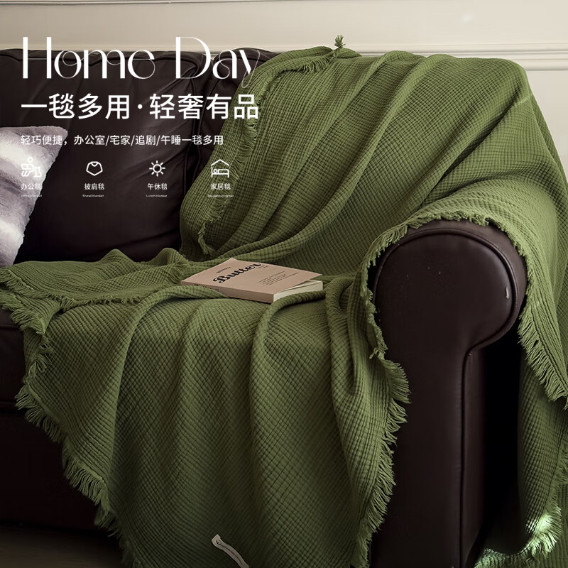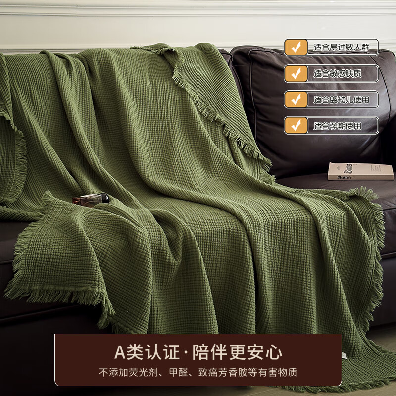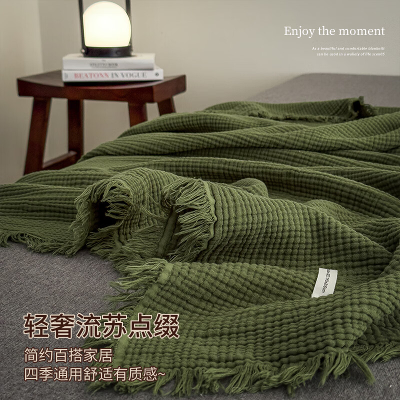 唐裔全棉针织苏流毯子沙发盖毯高级感办公室午睡装饰毛毯复古客厅日式 雅居-质感绿【100%全棉六层纱】 100x150cm儿童纱布毯