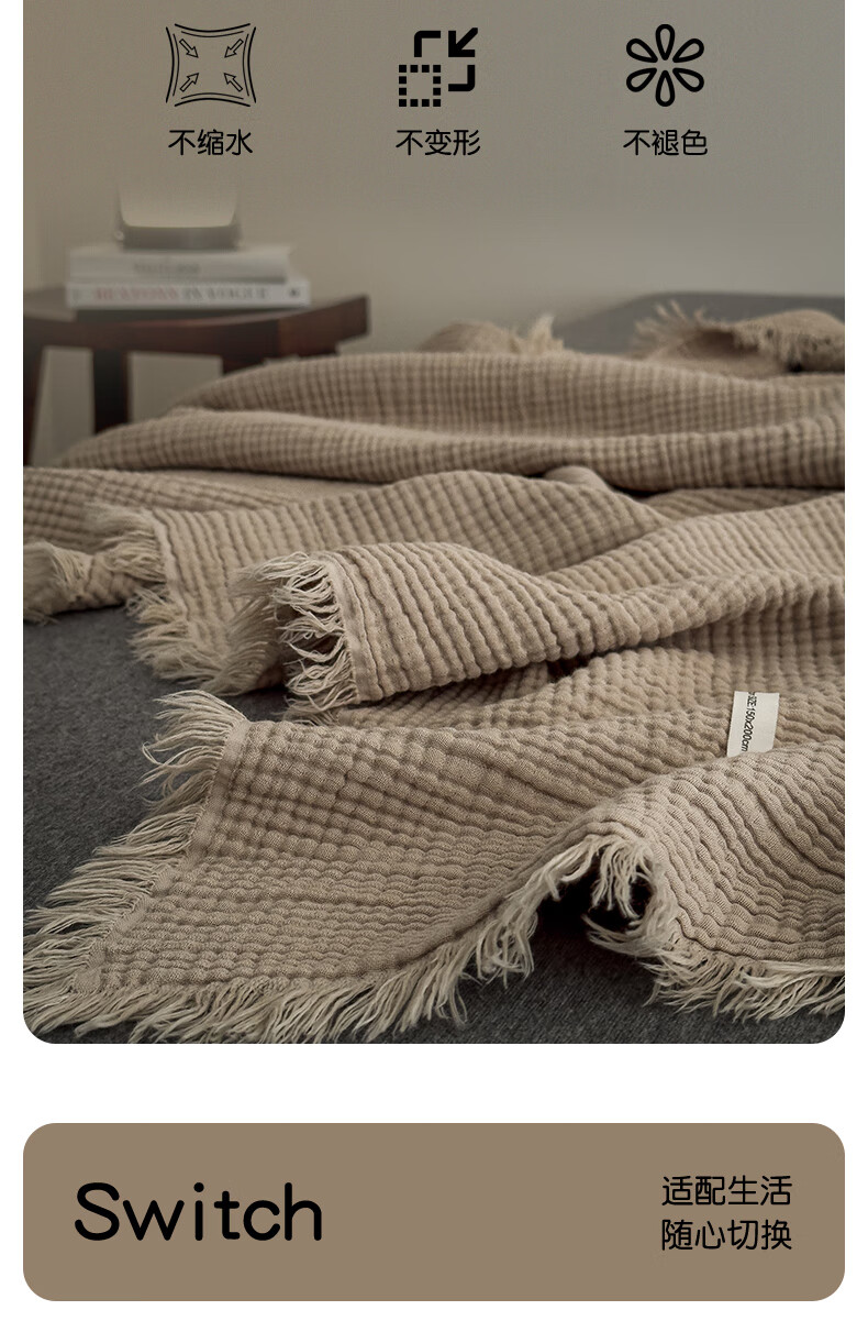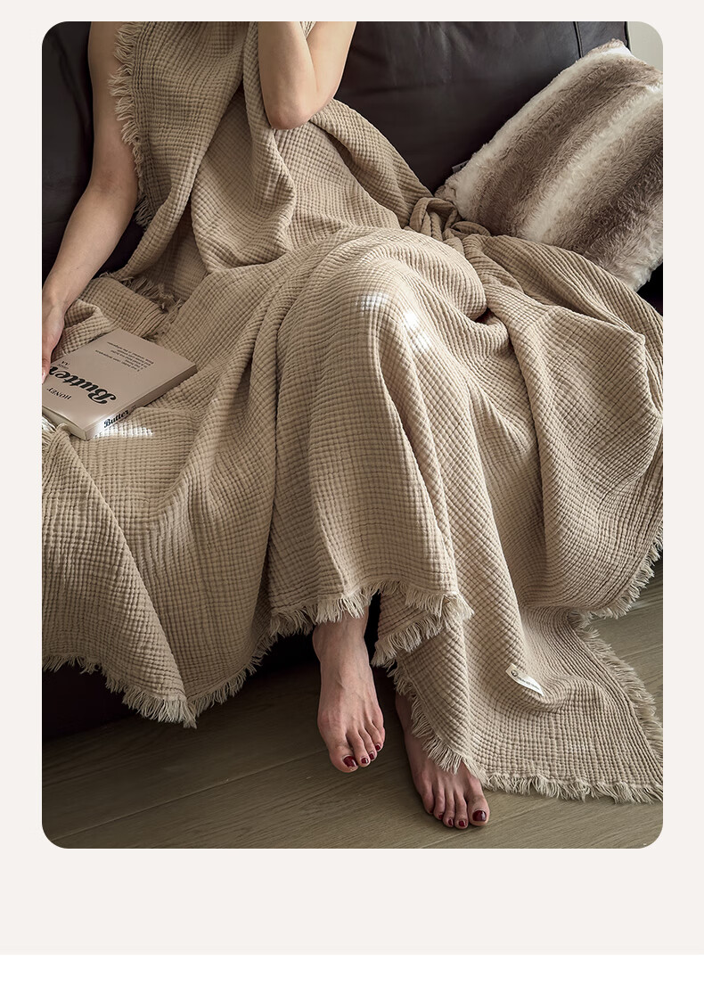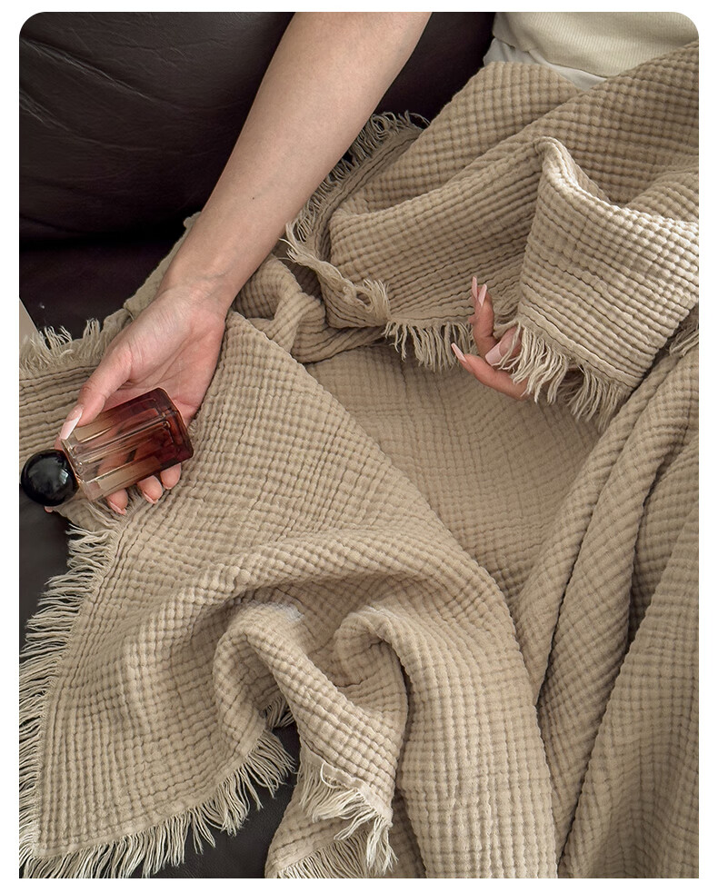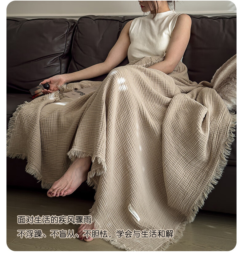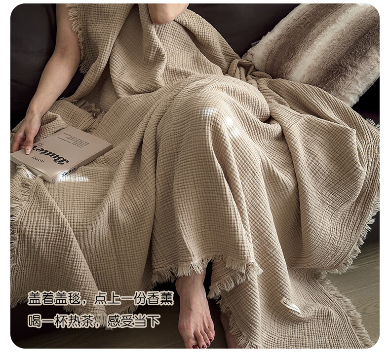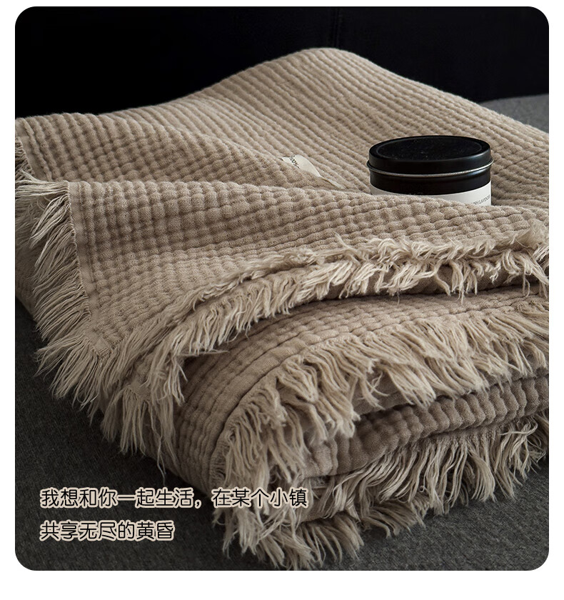 唐裔全棉针织苏流毯子沙发盖毯高级感办公室午睡装饰毛毯复古客厅日式 雅居-质感绿【100%全棉六层纱】 100x150cm儿童纱布毯
