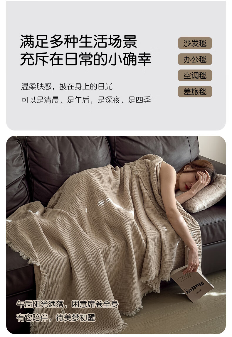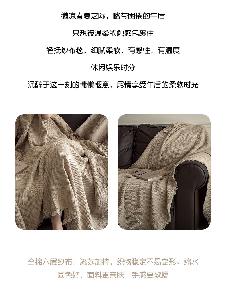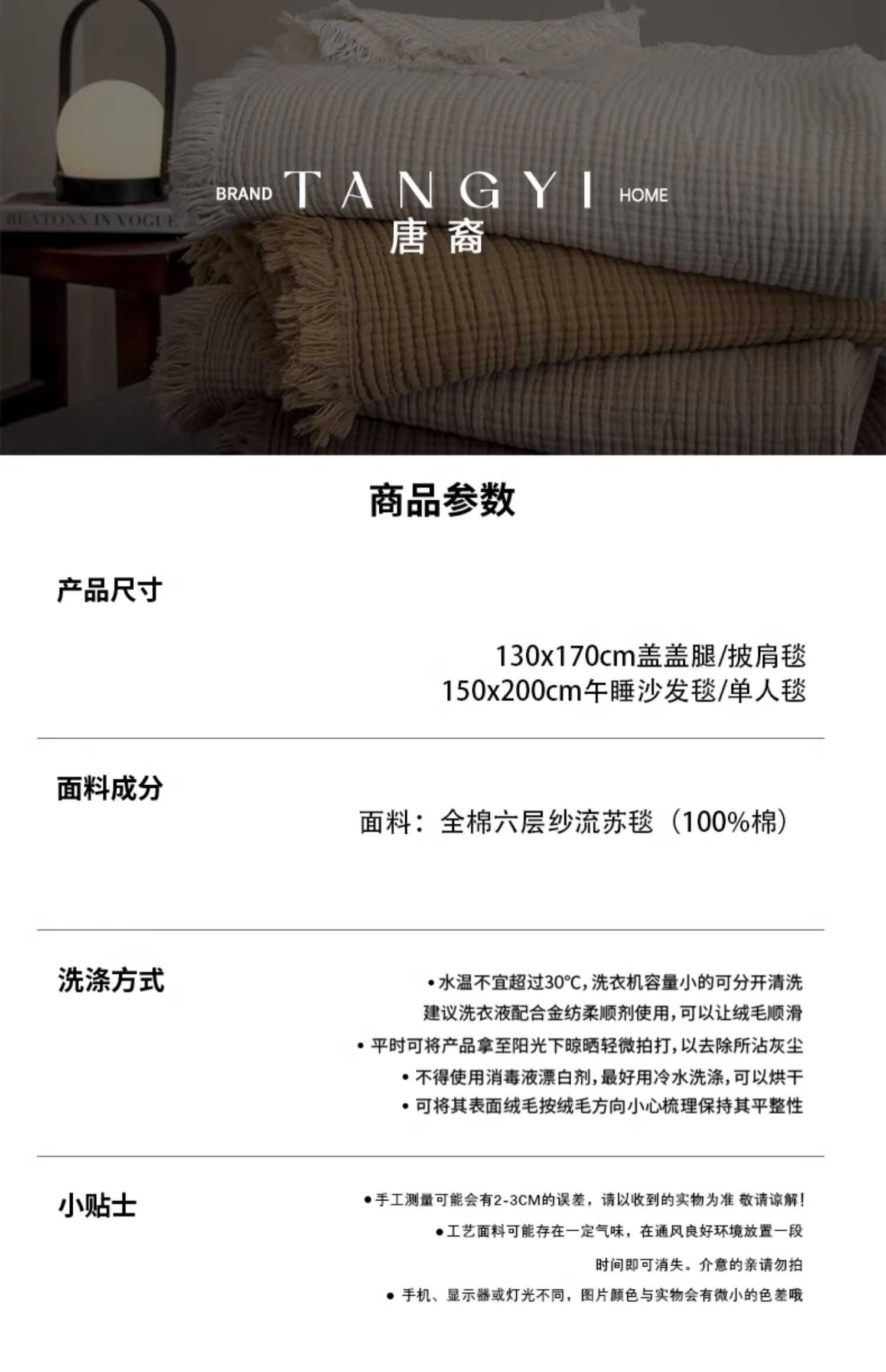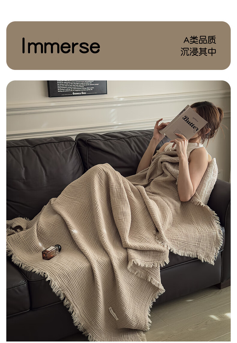 唐裔全棉针织苏流毯子沙发盖毯高级感办公室午睡装饰毛毯复古客厅日式 雅居-质感绿【100%全棉六层纱】 100x150cm儿童纱布毯