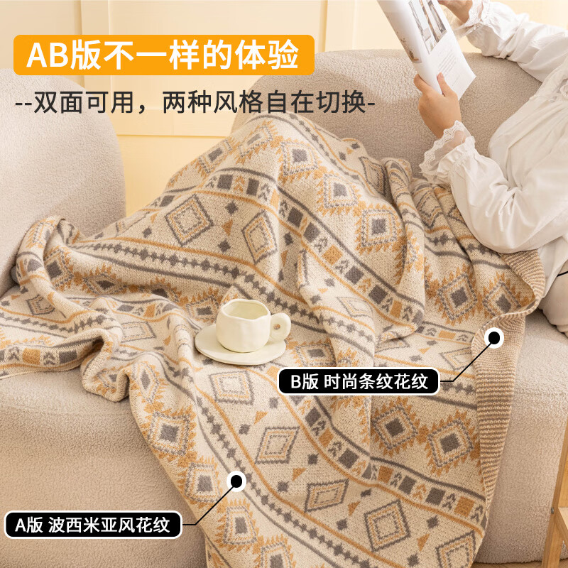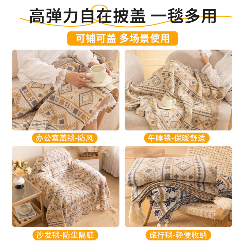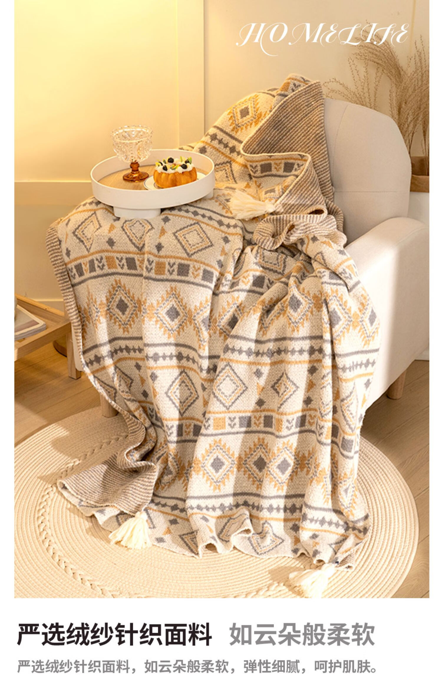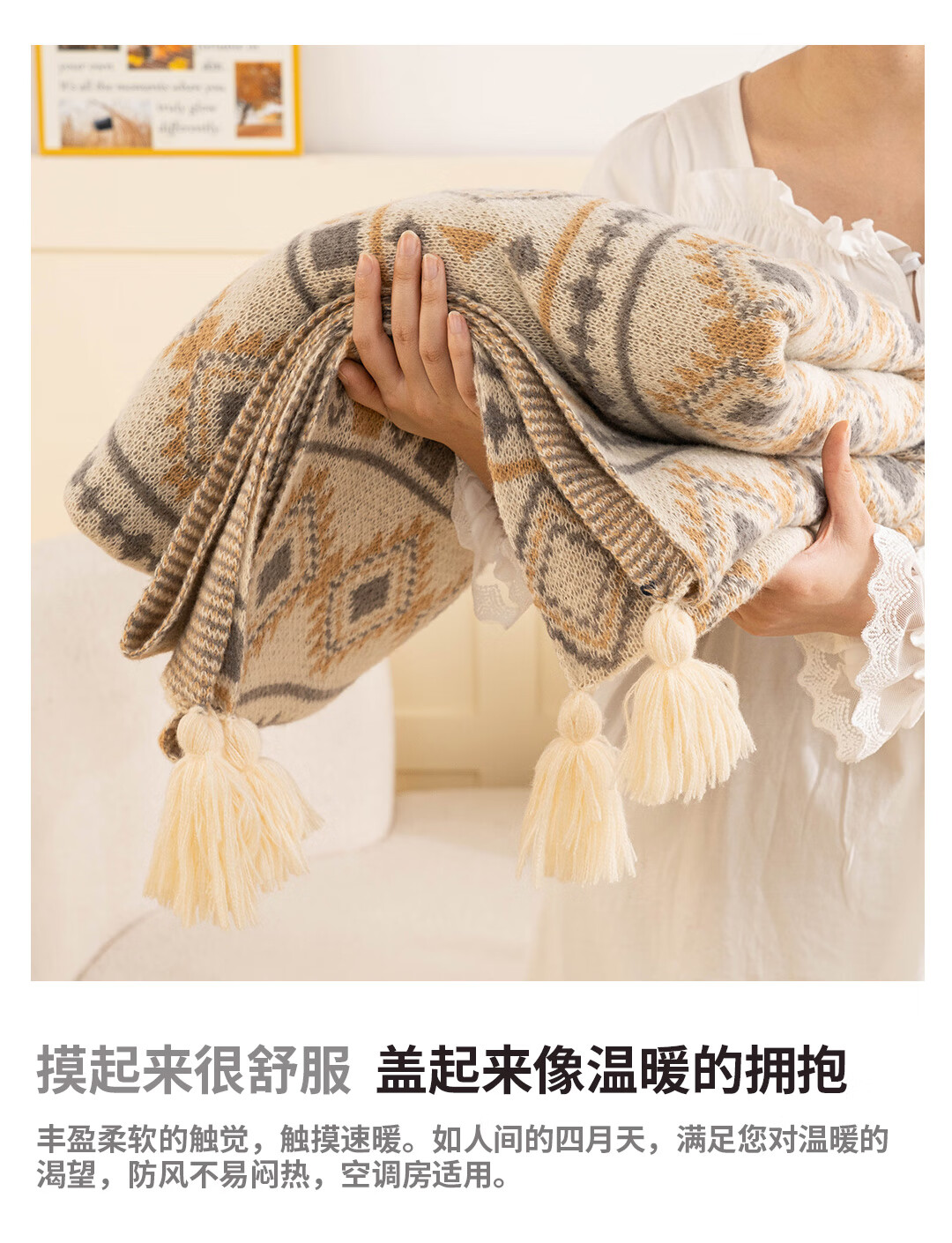 高睿波西米亚风毛毯子沙发巾针织毯办公室午睡空调盖毯床尾毯床搭高睿 波西米亚 70cm*100cm【单人沙发盖腿毯】