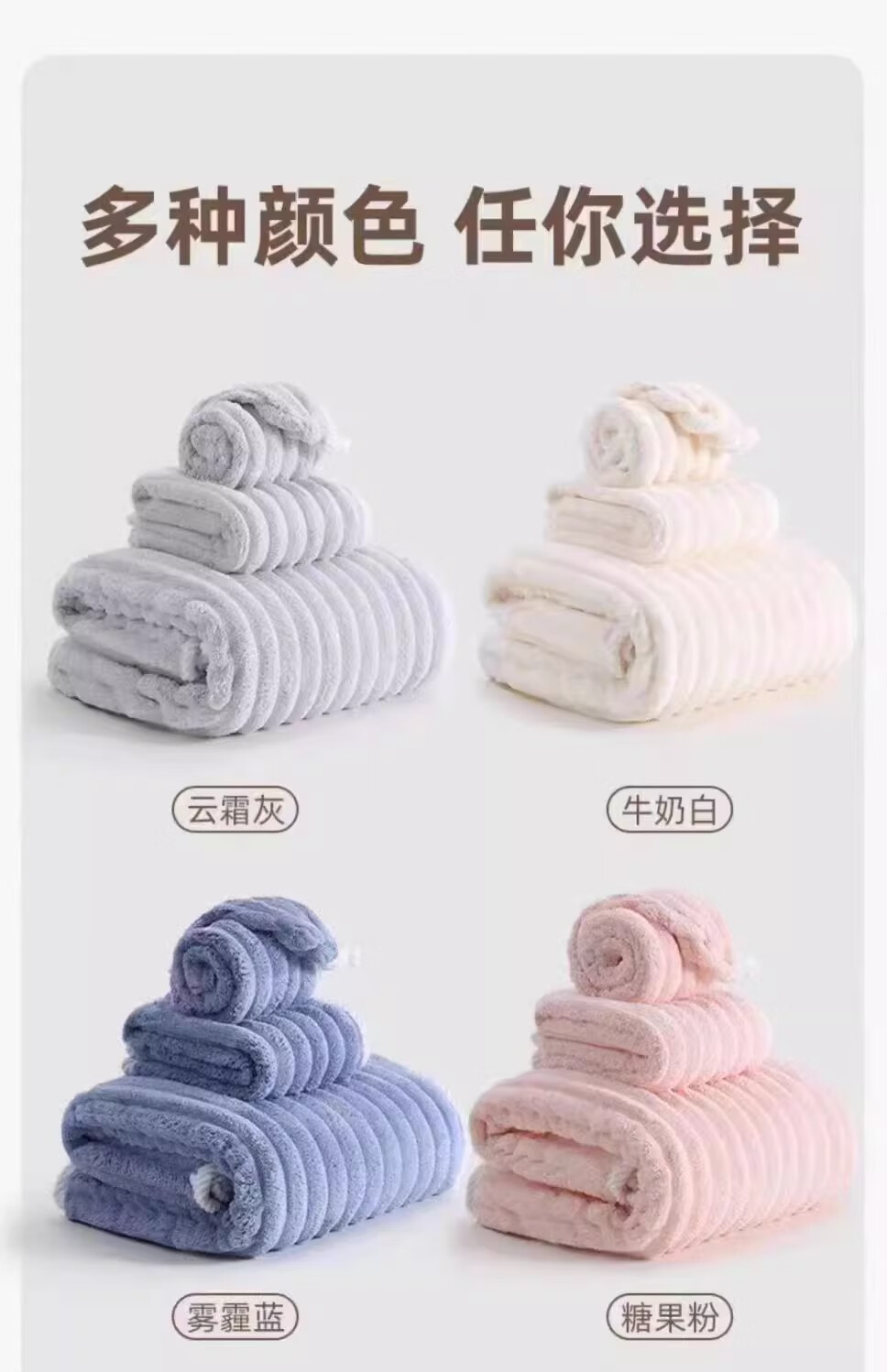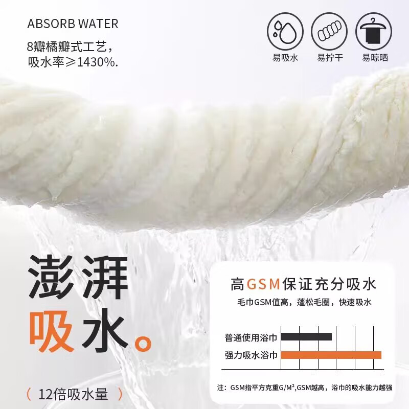 浴巾男女家用速干比全棉纯棉吸水加厚不掉毛情侣大人洗澡裹巾毛巾 2条浴巾装【白+蓝】糖果条 70*140cm